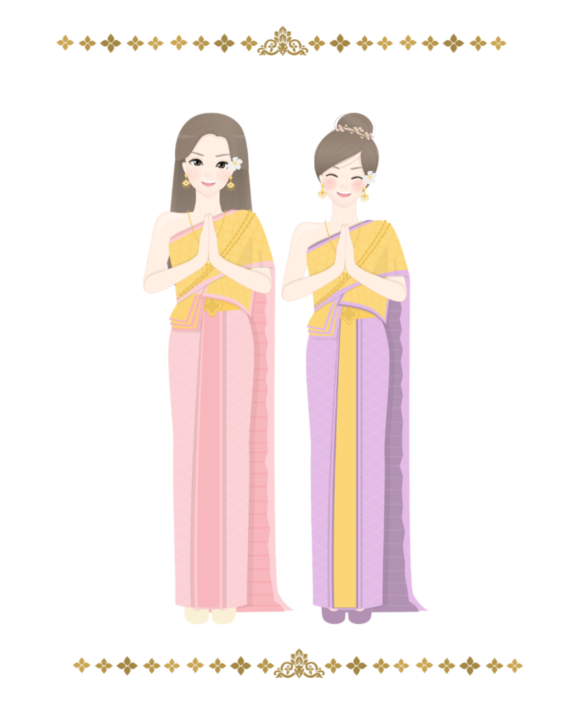女性のタイ衣装は、片側の肩を見せるデザインで、